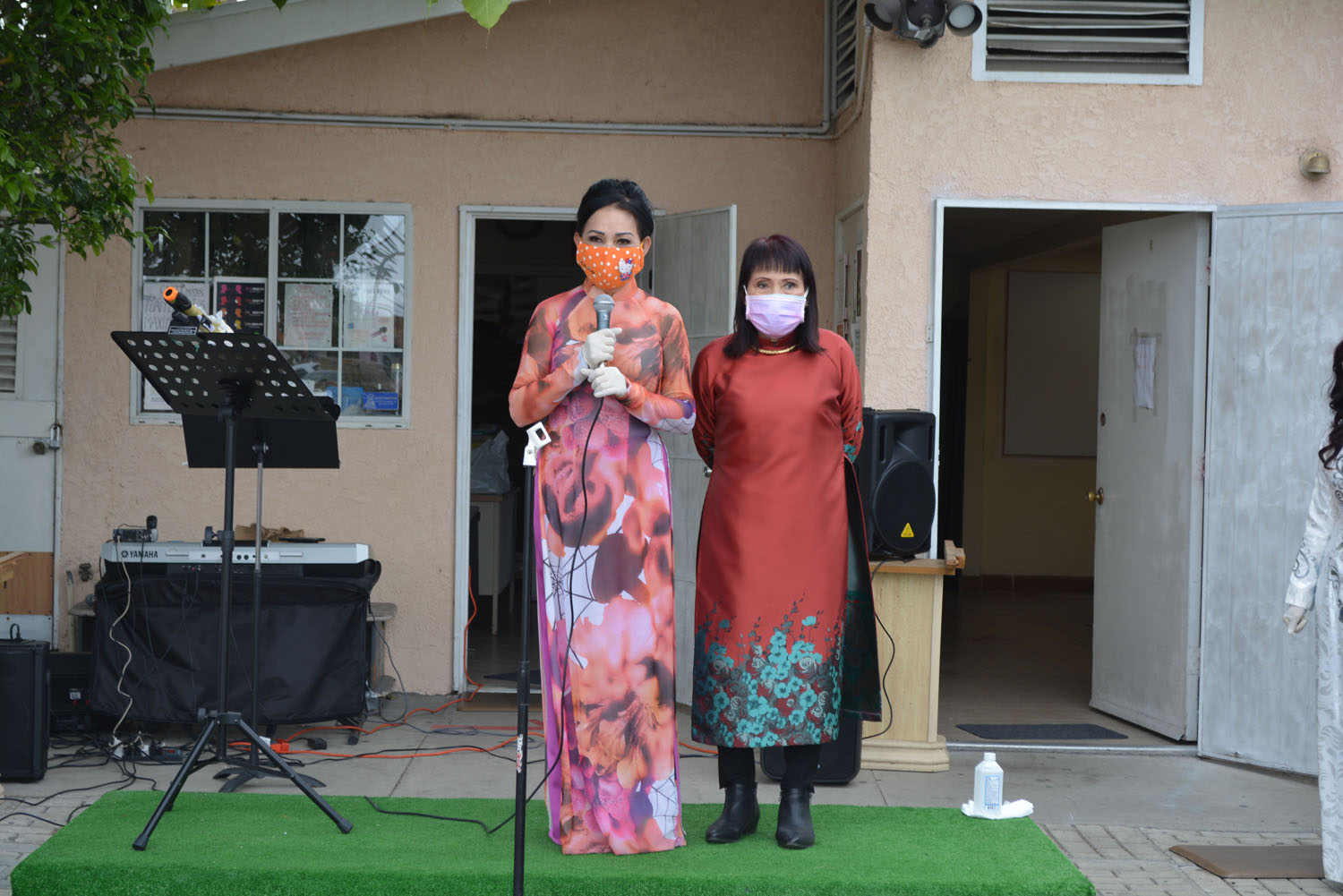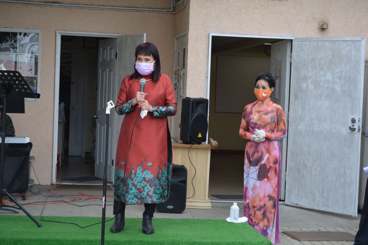 Sau đó, anh giới thiệu bà Từ Ngọc Dung, sáng lập và điều hành Hội Cao Niên Á Mỹ trong suốt 30 năm qua lên ngỏ lời chào mừng và cảm ơn tất cả mọi người tham dự, Bà nói, “Trước thềm năm mới Xuân Tân Sửu, mặc dù qua Tết nhưng vẫn còn trong Tháng Giêng, Tháng Giêng là tháng ăn chơi, thành ra Hội Cao Niên chúng mình cũng có một chút ăn chơi. Chúng tôi rất cảm động được gặp lại quý vị ngày hôm nay và vui mừng được biết các cụ cao niên đã được chích ngừa Covid-19 rồi nên chúng ta cũng an tâm, bớt lo lắng, và chúng ta hy vọng trong những ngày sắp tới, tất cả những người dưới 65 tuổi cũng được chích hết để chúng ta không còn phải lo lắng nữa. Chúng tôi xin kính chúc tất cả quý cụ cao niên, quý quan khách và mọi người một năm Tân Sửu được an khang, sức khỏe dồi dào và vạn sự như ý. Đại dịch Covid-19 sớm chấm dứt trên toàn thế giới để chúng ta có một cuộc sống bình an trở lại.”