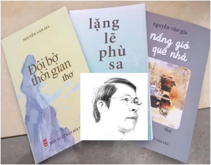 Nguyễn Văn Gia (NVG) làm thơ buổi tàn cuộc binh đao, đâu đó trước khi Hiệp Định Paris (1/1973) được ký kết. Anh hân hoan “chào chim sẻ, chim cu gáy của ngày còn bé/ Rủ nhau về sau năm tháng mù tăm”… Và khi đó anh xin làm một thầy giáo trẻ/ Dạy dỗ bầy em dưới mái trường làng.” Thật hồn nhiên và rất đỗi lạc quan cách mạng. Cho đến khi“Quá nửa đời gió bụi với sương phai/ Khi ngoảnh lại đã hoàng hôn nắng quái/ Cái không thực làm sao tìm cho được/ Đôi tay gầy không thể hái trăng sao.” Nhà thơ “Bỏ rơi viên phấn nửa chừng/ Ta về nằm ngủ giữa rừng chiêm bao.” Lại chiêm bao, bây giờ anh mơ bóng tre xanh, quê nhà đã thành cố hương, mùa trăng cũ và tiếng chim…