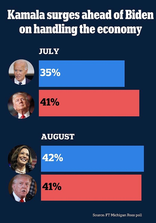 Vấn đề kinh tế là trọng điểm trong cuộc bầu cử 2024. Trước đây dù ông Biden làm rất nhiều chuyện để đưa nền kinh tế trở lại sau hậu quả đại dịch và hai cuộc chiến tranh tốn kém để bảo vệ tự do dân chủ và đồng minh. Đồng thời chận đứng nạn lạm phát. Dù vậy, ông không được đa số dân chúng ủng hộ những kết quả này. Bà Harris mới bước lên thế chỗ ông, đã kèn cựa với Donald Trump. Và có lẽ sẽ vượt qua trong tuần tới.