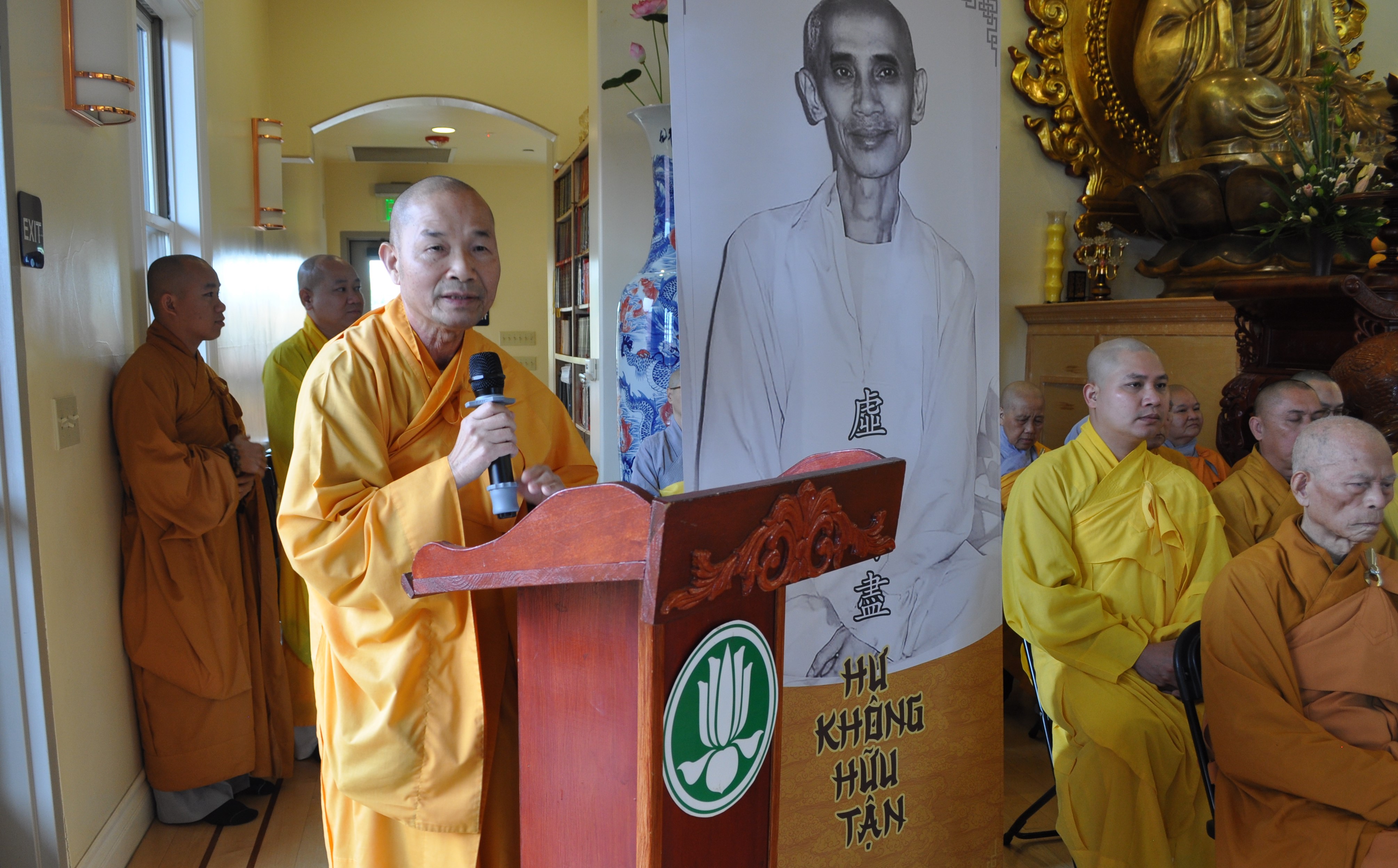 HT Thích Nguyên Siêu nói về công hạnh của Trưởng Lão HT Thích Tuệ Sỹ. Photo: Nguyễn Thanh Huy.